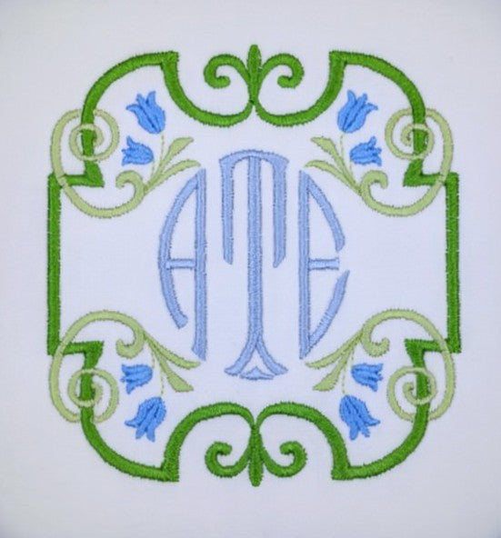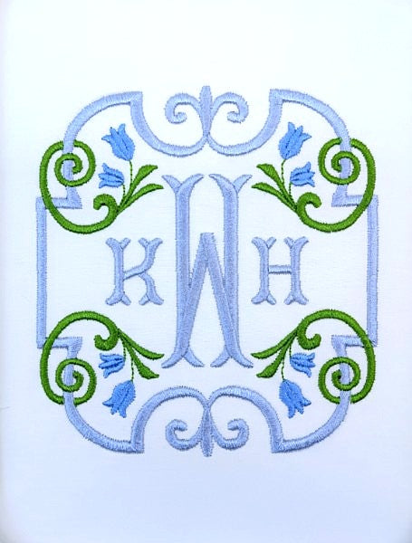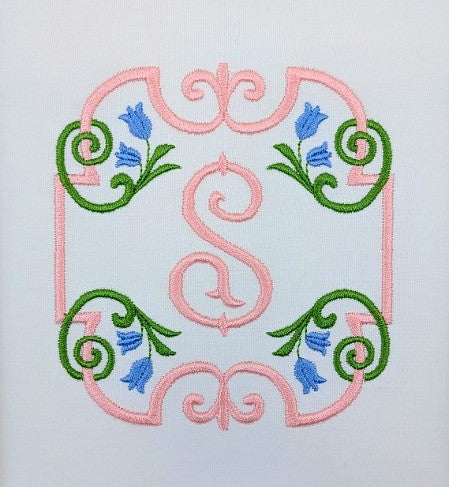 A lovely shield shaped crest intertwined with florals, influenced by a 1500’s design. Three sizes are included. The crest is fully digitized so that the floral flourishes can be omitted if you wish. Fonts not included.