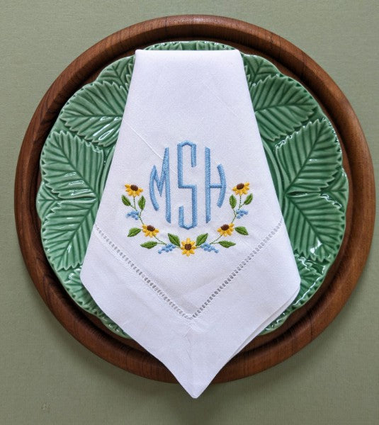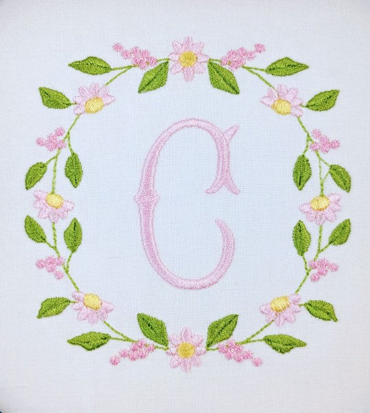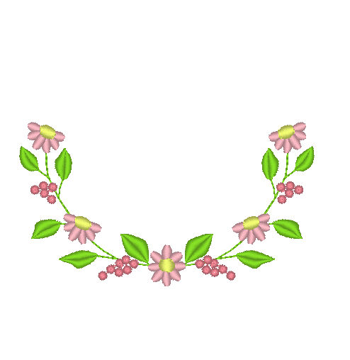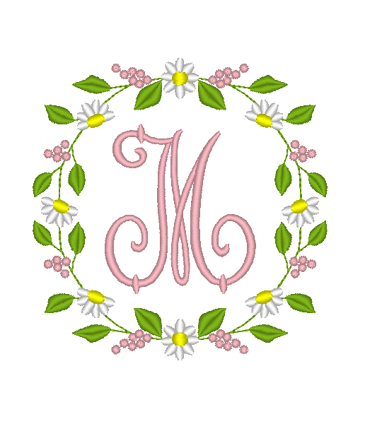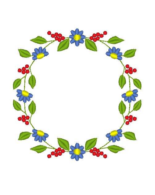 Lovely florals form a garland and wreath. A change of thread colors changes these flowers from sweet spring, to summer daisies to fall sunflowers. Fonts not included.