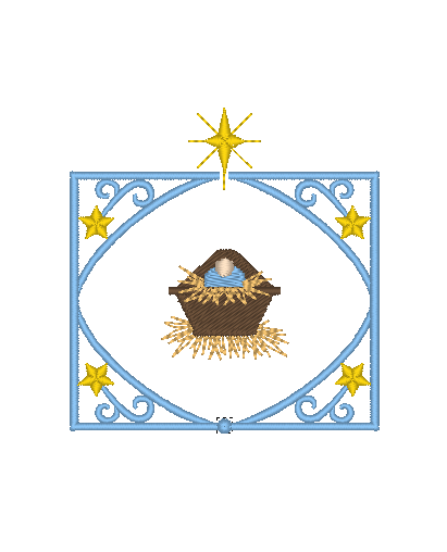 The baby in the manger as a design and a frame and baby and star minis are included. The minis are tiny for baby and children's items. Fonts not included.