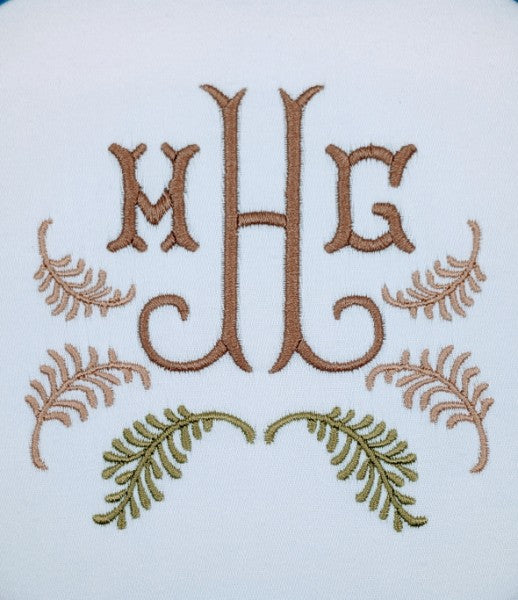 It's feeling like Fall with colorful falling leaves. These simple designs are striking when embroidered. A border, two frames and a diagonal leaf layout are included. Use the diagonal alone or paired with initials. Three mini leaves are also included to combine with initials, monograms or your designs. Fonts not included.