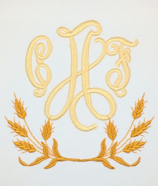 Autumn grain stalks form three monogram frames. Fonts not included.