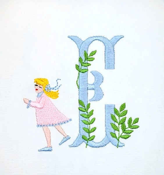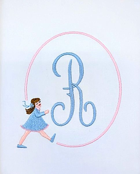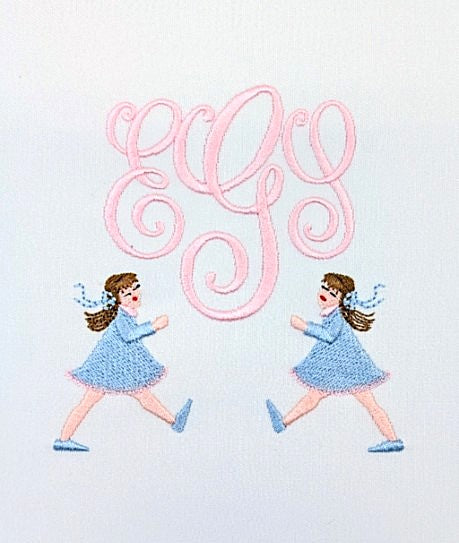 Cute little school girls in lace trimmed dresses. Two frames and two versions of the girl are included. Mini leaf sprigs are also included to combine with your names, monograms and designs. Fonts not included